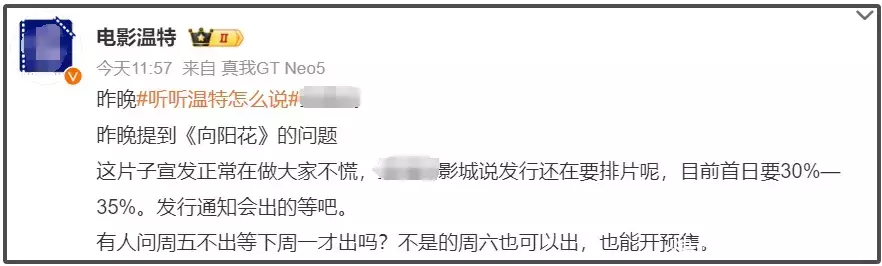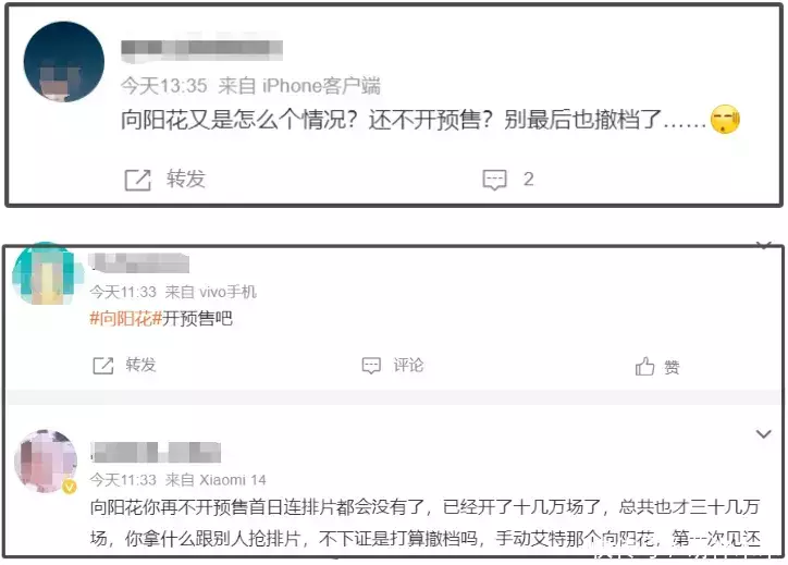 还好,有其他业内出面表示,《向阳·花》虽然没开预售,但宣发照常进行,并没有受到太大影响,而且预售也快开了,大概就在最近几天了。