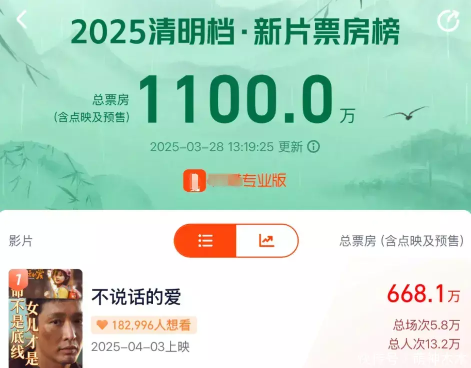 《下一个台风》撤档了,2025年清明档剩下赵丽颖和张艺兴对打,《向阳·花》不开预售,张艺兴主演的《不说话的爱》就领先了好几步。