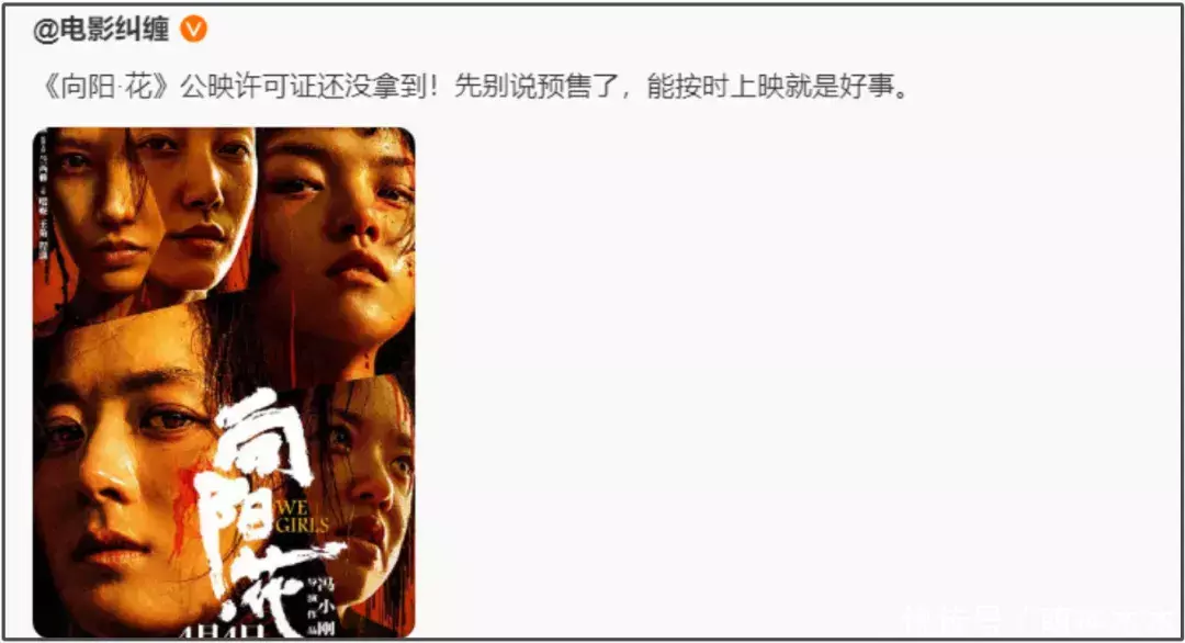 偏偏屋漏偏逢连夜雨,这时候又有大V爆料称,《向阳·花》还没拿到公映许可证,能按时上映就不错了。